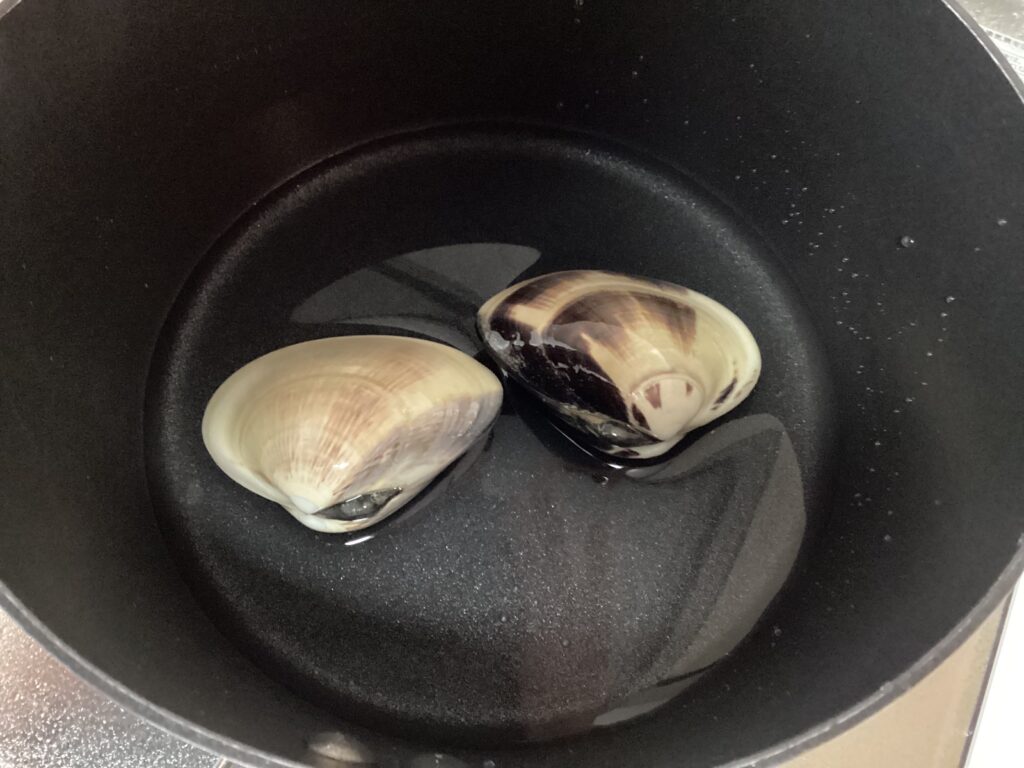 旬は2月から5月。こちらも産卵を控えて身がふっくらとし、旨味成分がギュッと凝縮する時期です。蛤独特の香りと旨みがたっぷり味わえます。砂抜きは海水と同じ3%の塩水で4時間ほど(約500mlの水に大さじ1の塩が目安)。もし時間があれば、砂抜き後に30分から1時間ほど水切りしておくと、蛤からコハク酸という旨み成分が出て、より美味しくなります。